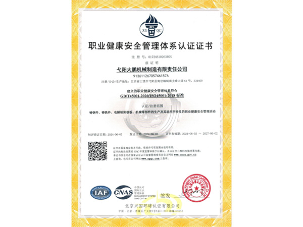 • 09-28弋陽大鵬機(jī)械制造有限責(zé)任公司成功取得規(guī)范